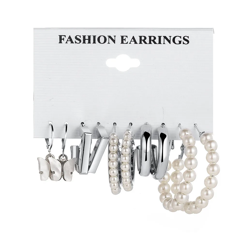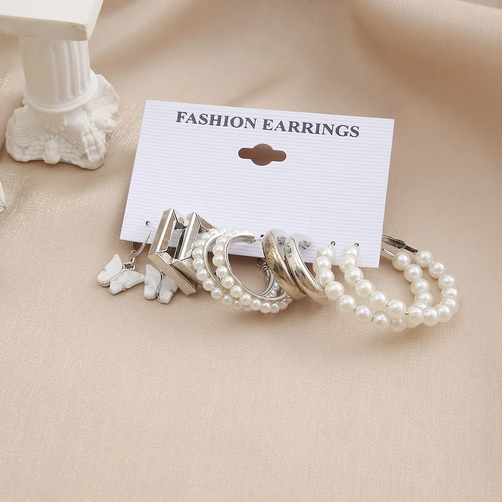 Комплект женских серег-колец золотистого цвета с жемчугом