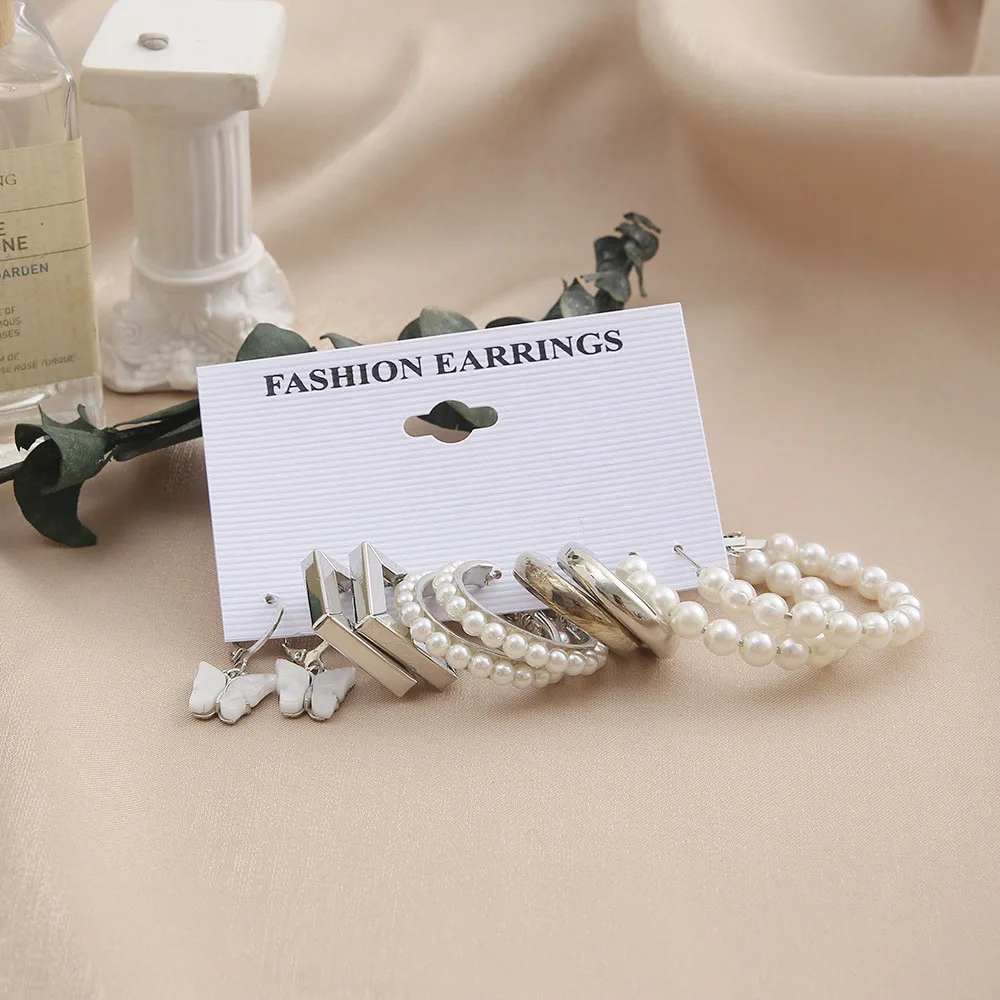 Комплект женских серег-колец с жемчугом и металлической цепочкой