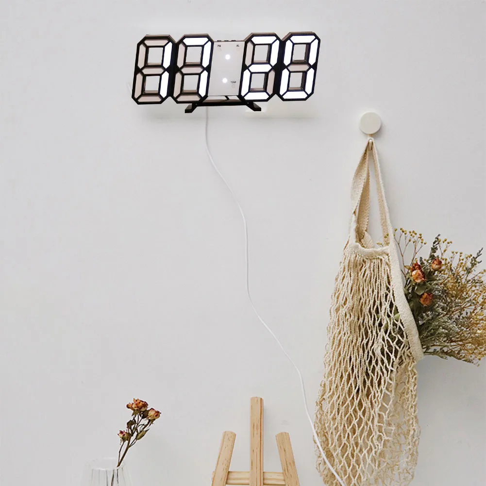 3D светодиодный цифровой настенные часы Дата Время Цельсия ночник Дисплей Настольный Будильник для дома гостиной спальни ДекорОписание:Светодиодный дисплей, отображение времени, отображение даты, отображение температуры, отображение будильника, автоматическая регулировка чувствительности, ручная регулировка яркостиСамый высокий уровень освещения-L3, а самый низкий-L0.Его можно использовать на рабочем столе или на стенеНочью его можно поместить на стол как атмосферный Ночной светильник, всегда напоминая себе, что вы должны быть полны энергии каждый день.Светодиодный экран автоматически передает время, дату и температуру.Спецификация:Размер изделия: 215*85*17 мм/8,46*3,35*0,67 дюймовОдин размер упаковки: 225*96*37 мм/8,85*3,7 * 1.45inВес нетто: 165,8 гВес одного брутто: 232,9 гДиапазон температур 0 ℃-50 ℃(32 ℉-122 ℃)Уровень: AL1, AL2, AL3Режим питания: аккумулятор памяти CR2032 (в комплекте)Источник питания: DC5V источник питанияUSB кабель: белая рамка с белыми проводами, черная оправа с черными провода, длина линии 1,5 мЦвет: белый, черныйПримечание:В связи с различиями мониторов и эффектами освещения реальный цвет товара может немного отличаться от цвета на фотографиях. Спасибо!Возможны отклонения в 1-2 см вследствие измерений вручную.