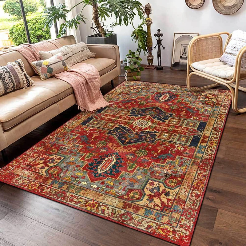 Персидские ретро-Коврики для гостиной в марокканском этническом стиле темно-красный черный ковер с геометрическим принтом прикроватный нескользящий напольный коврик для спальни