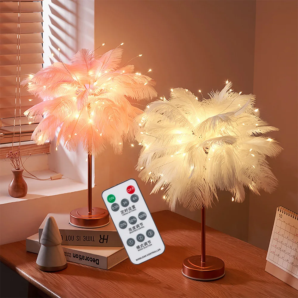 Настольная лампа с перьями и пультом дистанционного управления, креативный теплый светильник сделай сам с питанием от USBбатарейки AA, украшение для дома, свадьбы, спальни