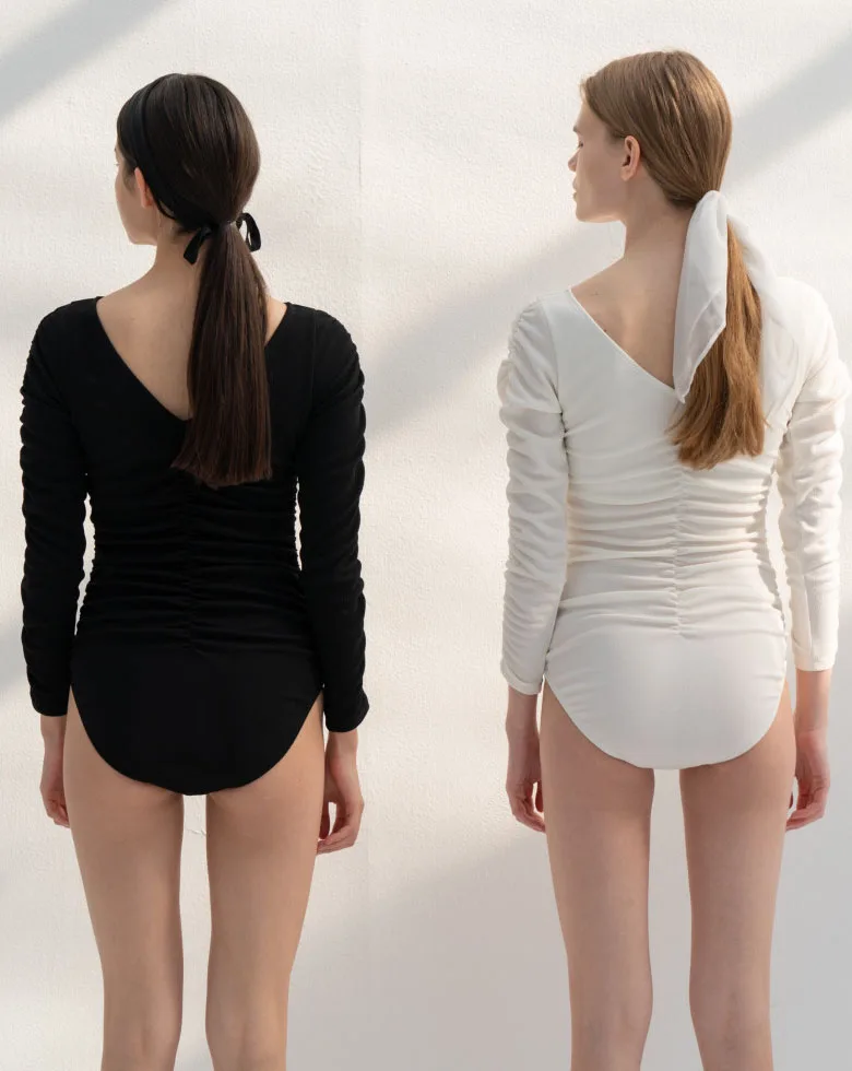 Цельный купальник, Женский плиссированный купальник, однотонный Мон...