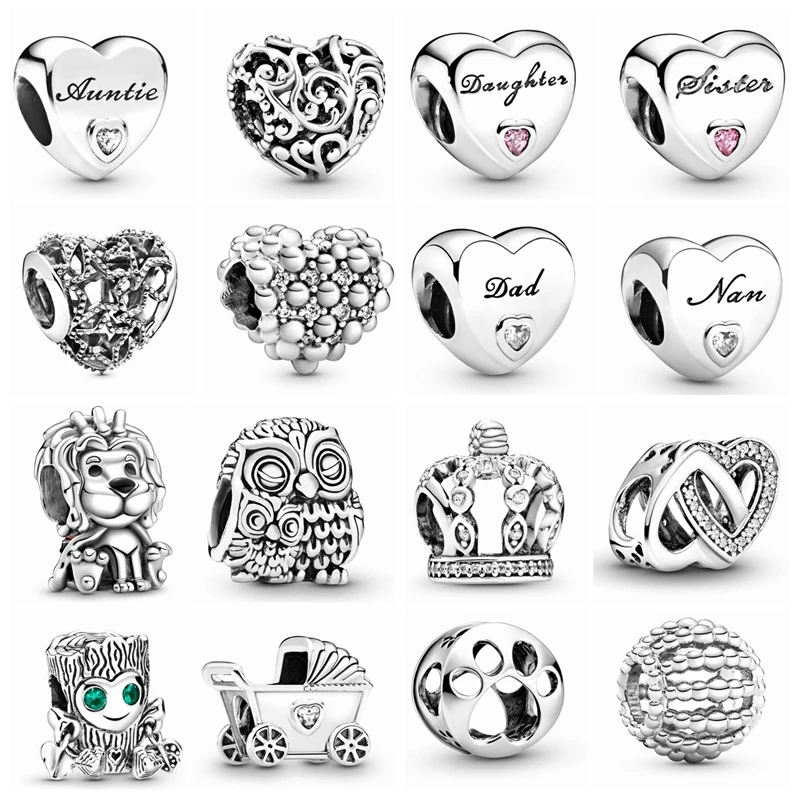Любовь, семья, мать и дочь, сердце, животное, корона, сделай сам, изящные бусины, подходят к оригинальному браслету Pandora, ювелирные изделия