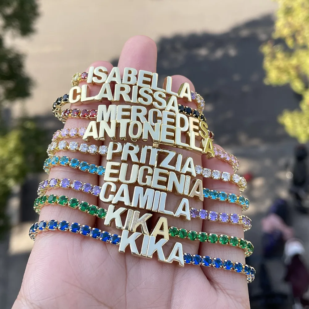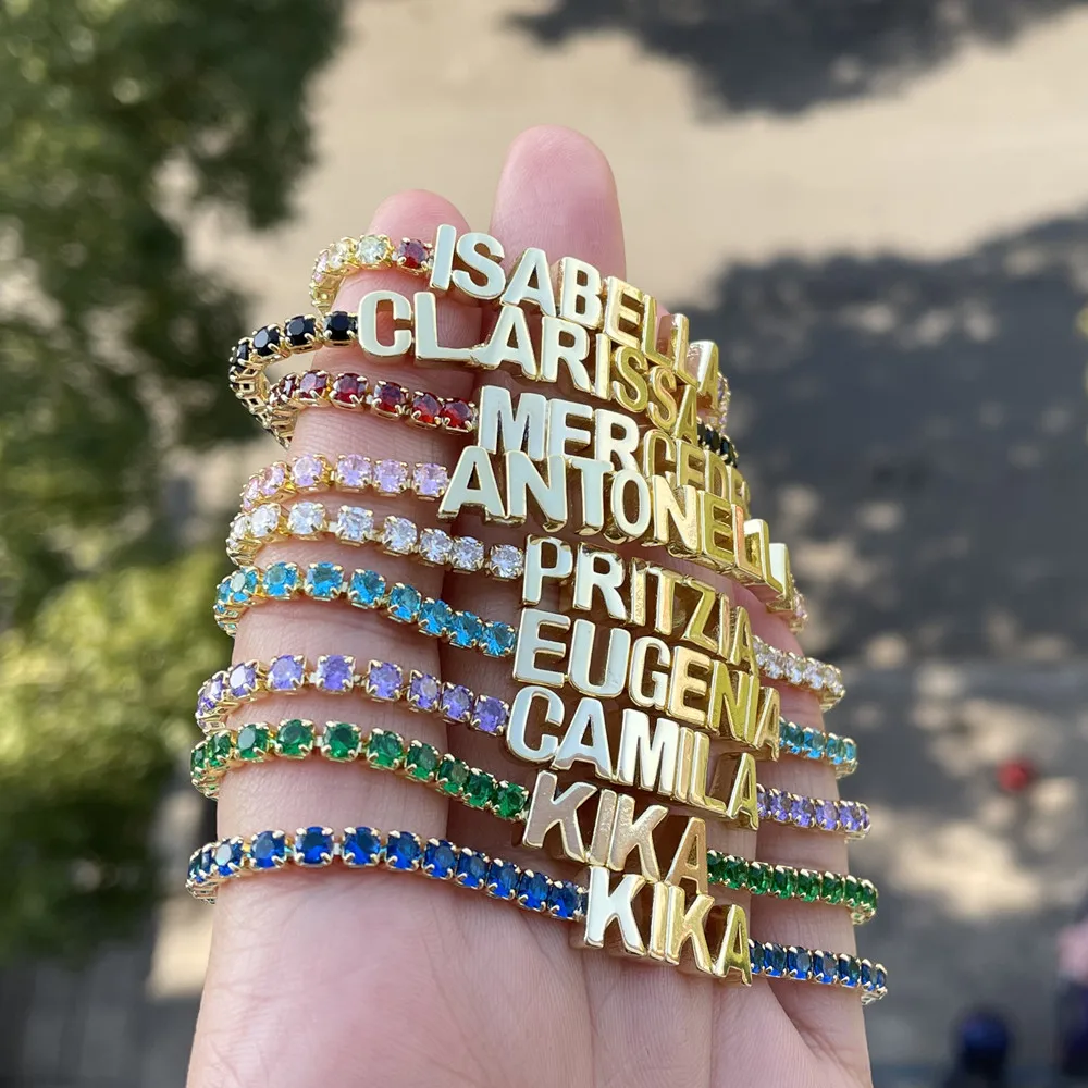 2021 новый персонализированный циркониевый красочный именной изысканный Подарочный браслет, женский браслет с табличкой
