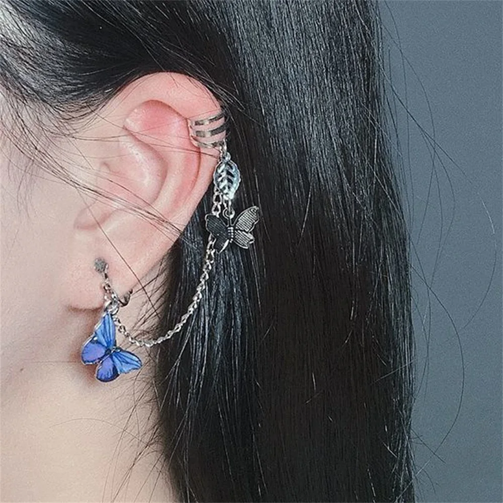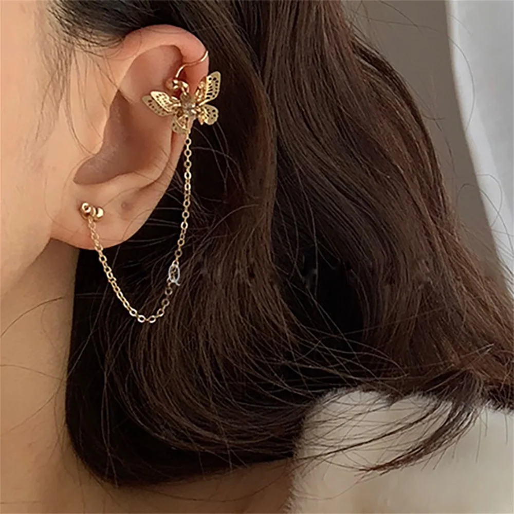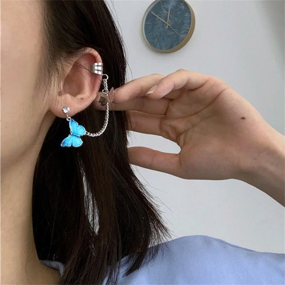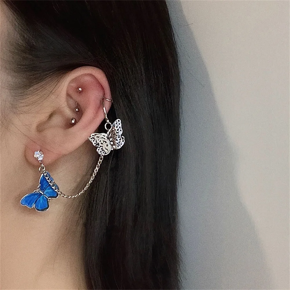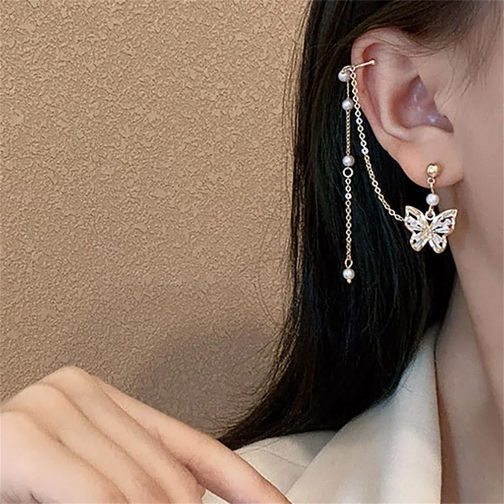 FNIO 2022 корейские модные стразы серьги-гвоздики в форме бабочки для женщин и девушек Модные металлические серьги-клипсы на цепочке Ювелирные изделия Подарки