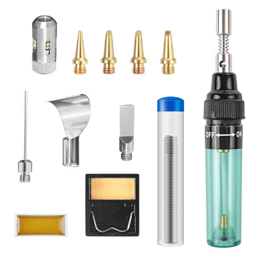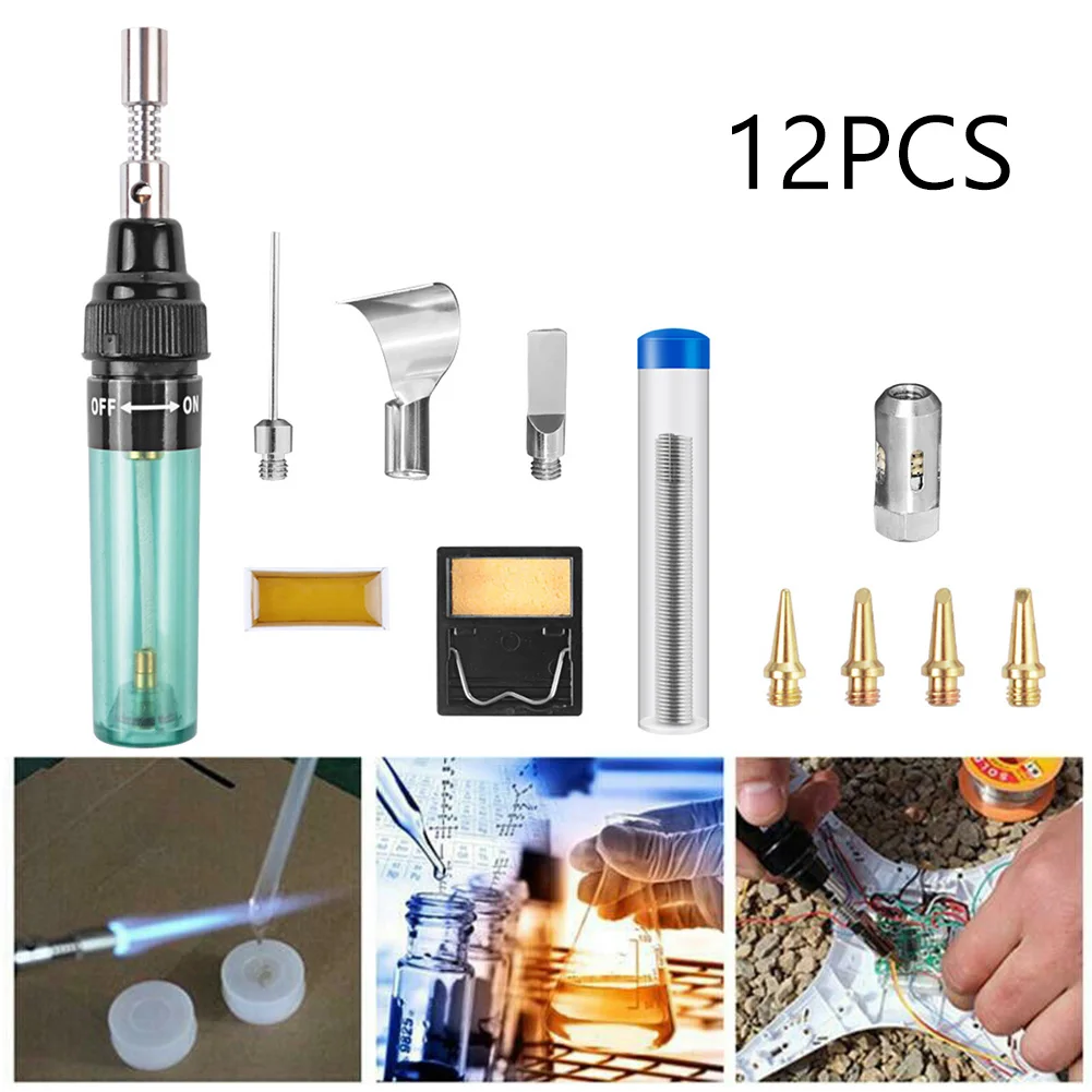 12 шт., портативный бутановый Газовый паяльник, сварочный набор, сварочный комплект, сварочный факел, строительный Газовый паяльник, сварочный паяльник