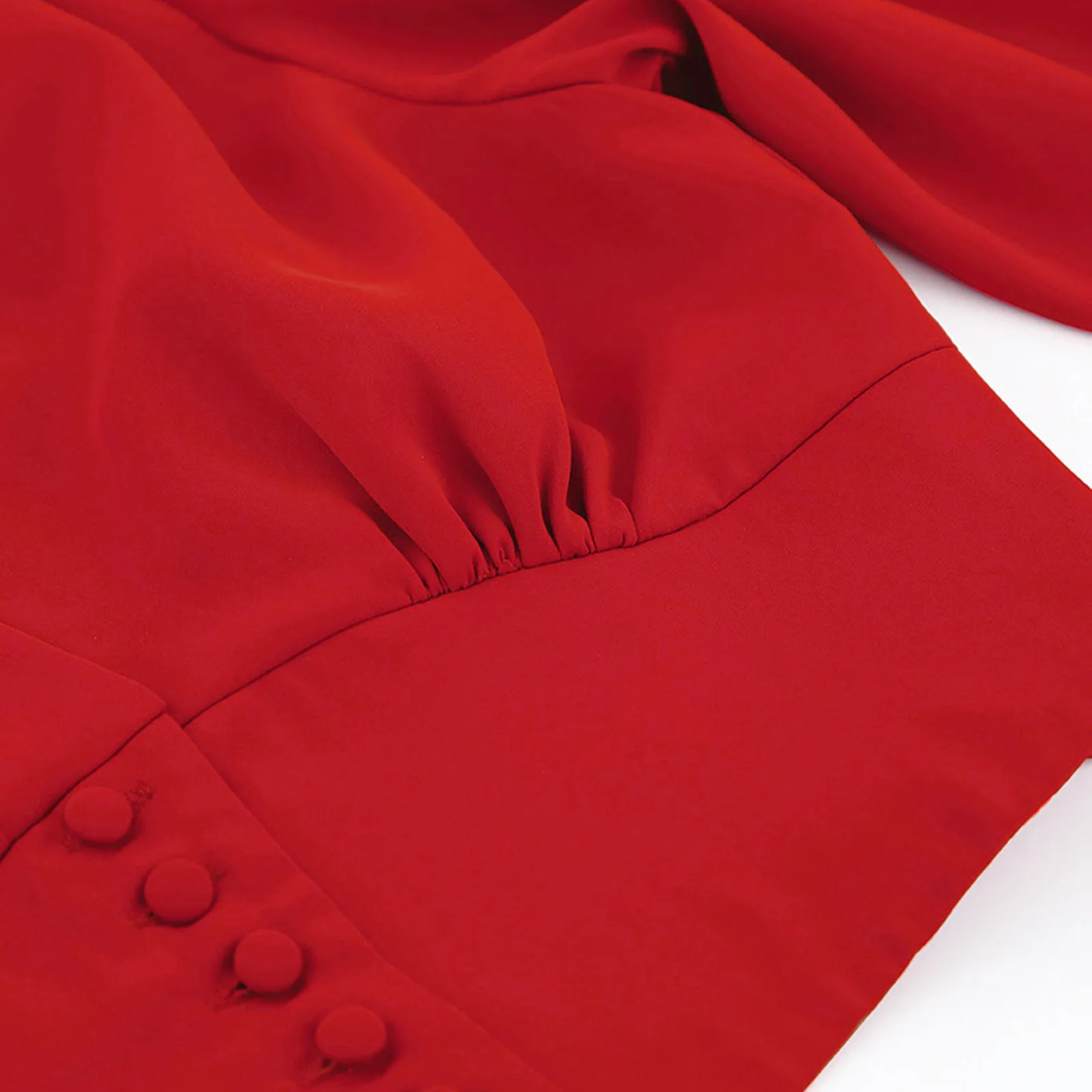 Женская пуговица с длинным рукавом и v-образным вырезом Блузка с рукавами-фонариками спереди
