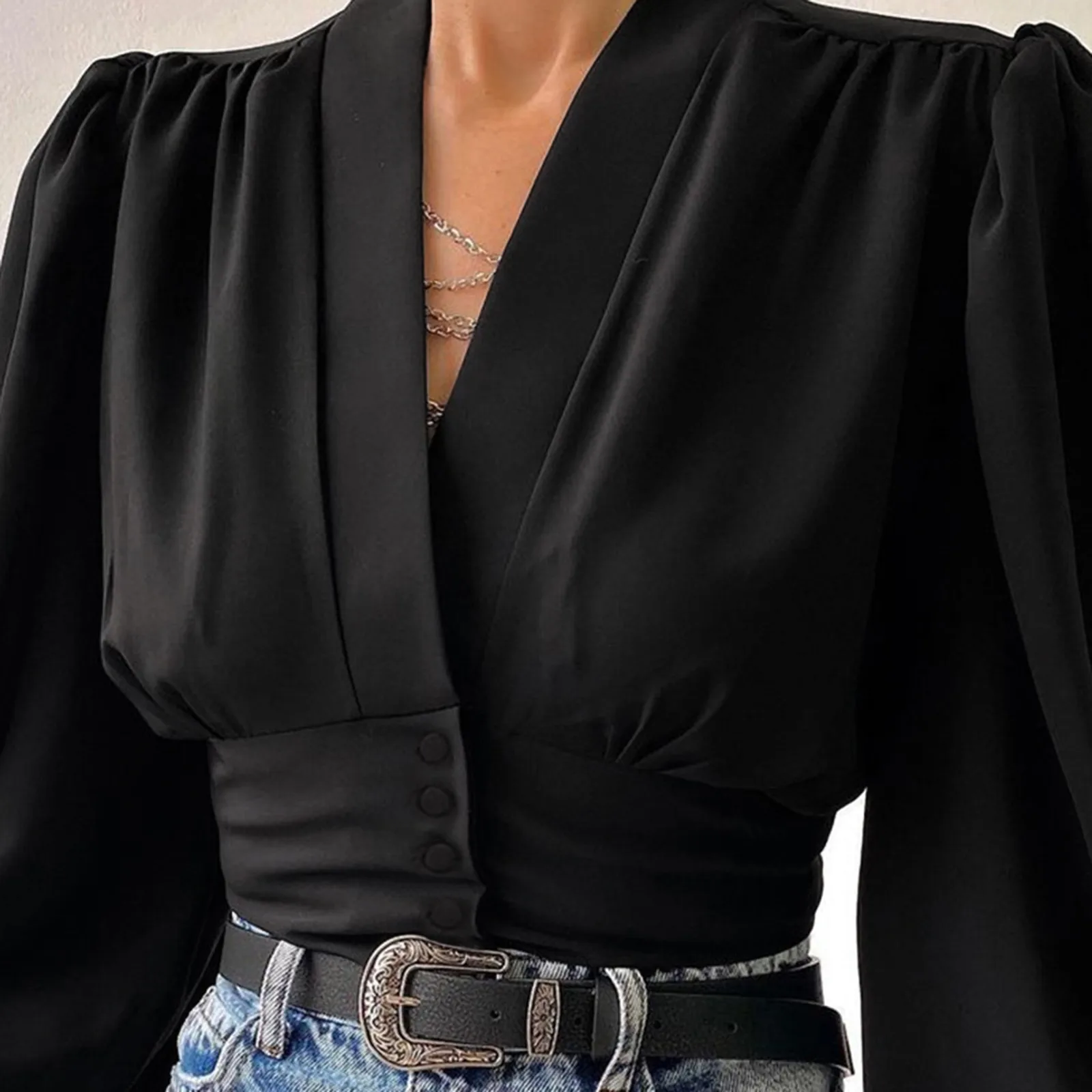 Женская блузка с глубоким V-образным вырезом, элегантная белая рубашка, винтажный корсет с длинным рукавом-фонариком, черная рубашка, офисные женские блузки для вечеринок, 2022