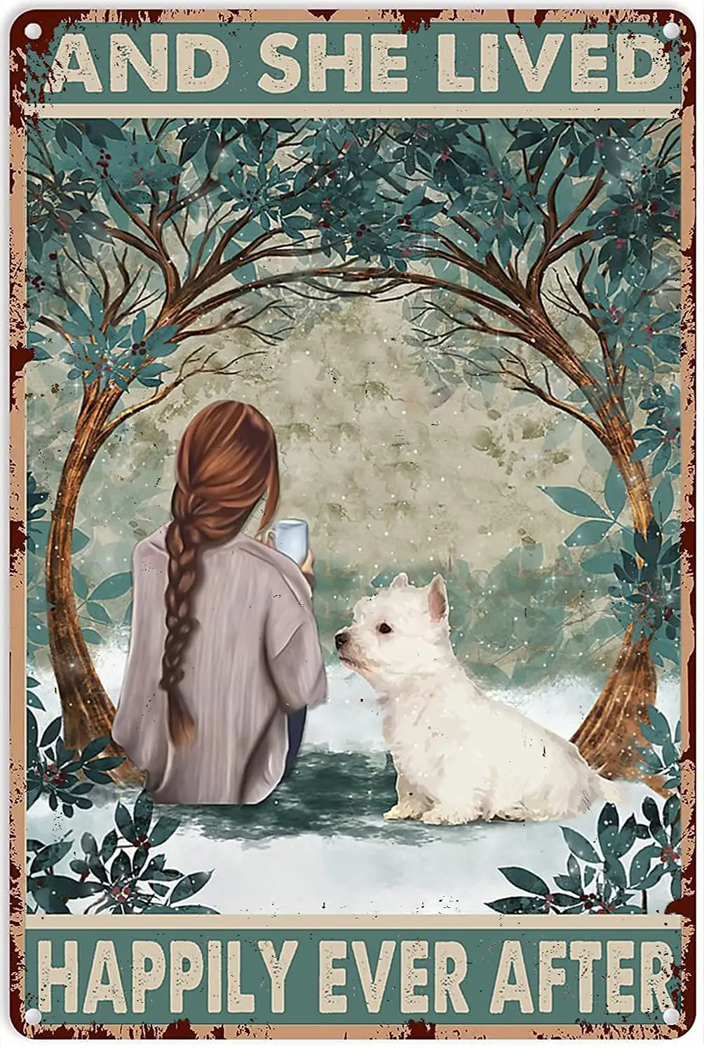 Винтажный жестяной настенный Декор Девушка и собака и она жила винт...