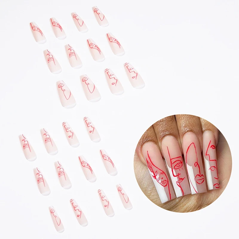 Накладные ногти с красной волной, 24 шт., накладные ногти для франц...