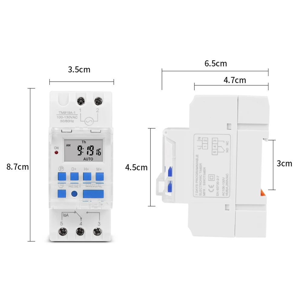 Пластиковое реле управления временем TM919ATM919H 16 А, программируемый на неделю цифровой таймер, переключатель автоматического цикла, таймера, выходная мощность