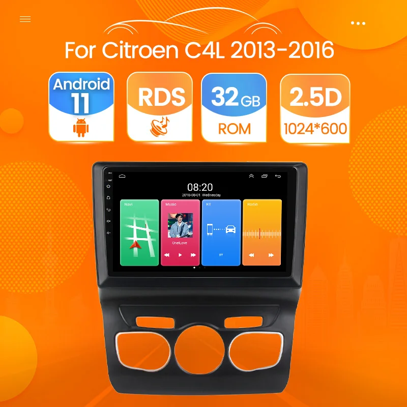 Автомагнитола 2 + 32 ГБ Android 11 для Citroen C4 C4L DS4 2013 2014 2015 2016 2017 стерео Мультимедиа GPS навигация Carplay Авто RDS