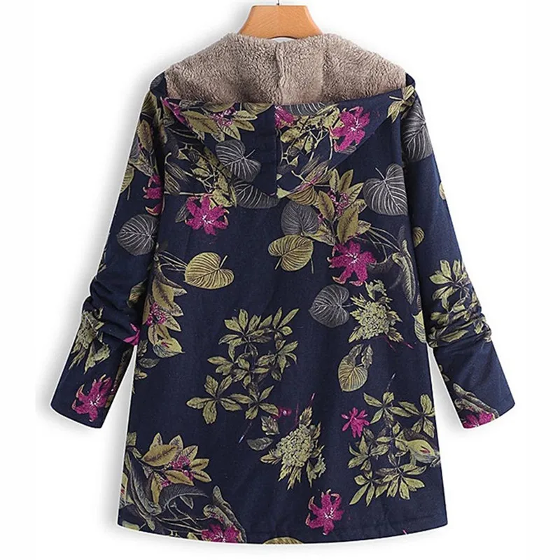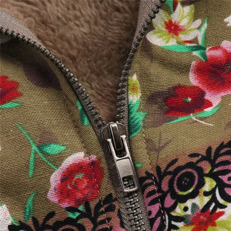 пальто Женское зимнее повседневное пальто с цветочным принтом, тепл...