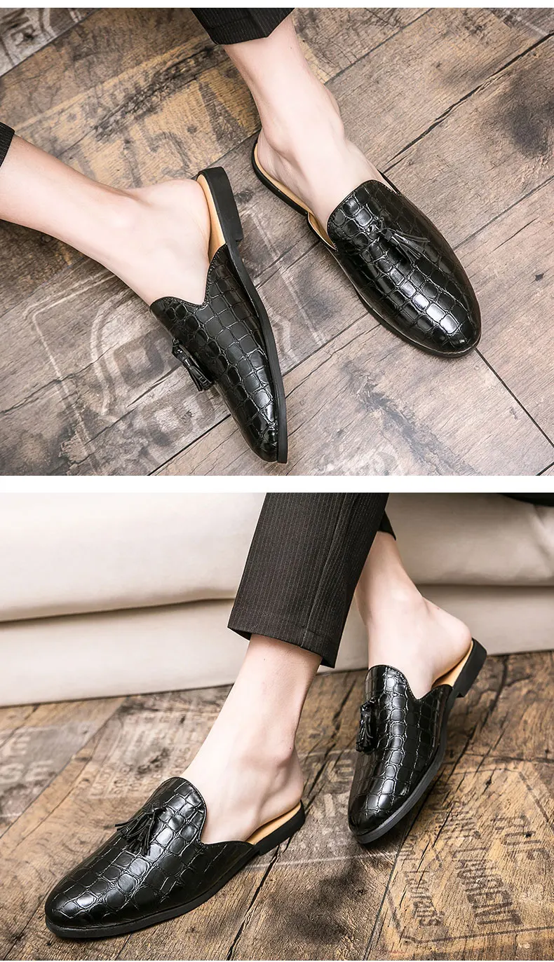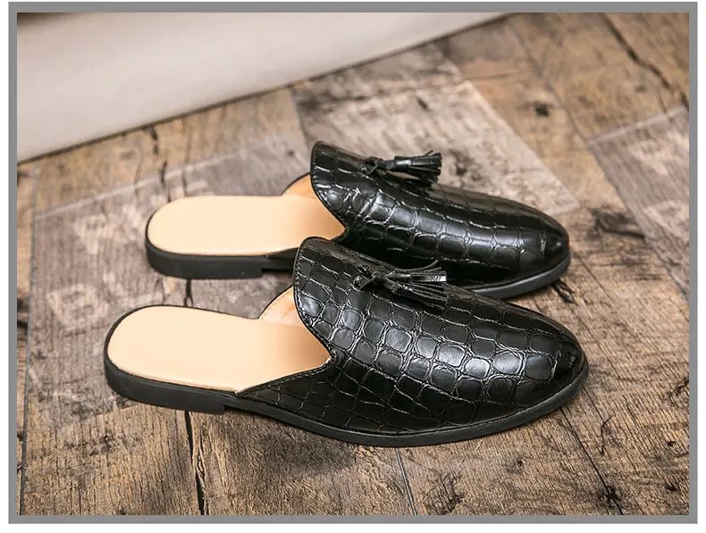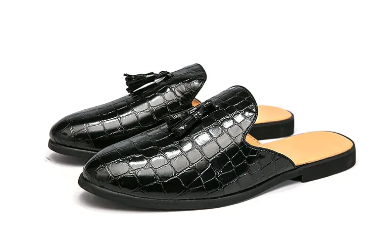 Туфли мужские из искусственной кожи, роскошные, мягкие, повседневные, плоская подошва, шлепанцы, для дома и улицы, сандалии, 45 Размер, черные