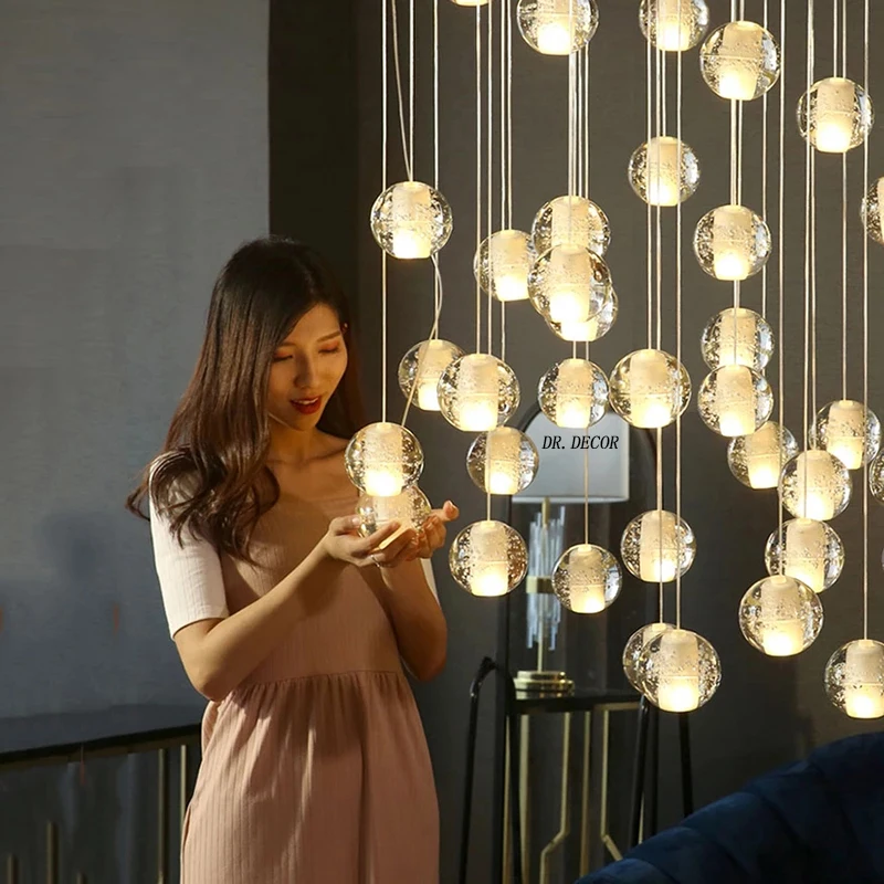 Светодиодный подвесной светильник в скандинавском стиле с хрустальным шариком, декоративное освещение для гостиной, креативный домашний интерьерный декор, лестничная Подвесная лампа