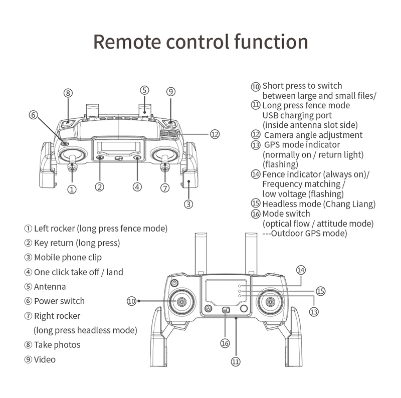 Дистанция дистанционного управления: 1200 м> Расстояние передачи изображения: 1000 мWIFI: 5G• Аккумулятор: 7,4 в 2200 мАчВремя полета: около 20 минутВремя зарядки: 90 минутХарактеристики мотора: бесщеточный мотор 1503• Карданный шарнир: трехосный (заголовок 50 °/шаг 120 °/Пейзаж 50 °)• GPS: GPS/ГЛОНАСС• Разрешение фронтальной камеры: Изображение: 8k, видео: 4k• Следующее Разрешение камеры: Изображение: 1080p, видео: 720p