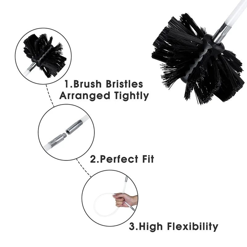 * Головка кисти изготовлена из нейлонового материала, который обладает высокой термостойкостью, антивозрастным, некоррозионным и более высокой эффективностью подметания. Кроме того, он не поцарапает внутреннюю поверхность дымохода