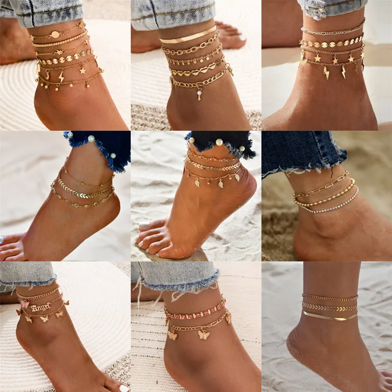 Женская цепочка, браслет на лодыжку, ювелирные изделия для ног, богемные бусы, брелок-бабочка, амулетный браслет, набор для женщин, аксессуары