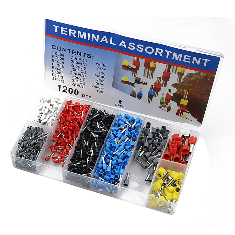 Трубчатый соединитель холодного давления для проводов, 1200 шт., электрические клеммы, обжимные наконечники для кабеля, набор наконечников для проводов с коробкой