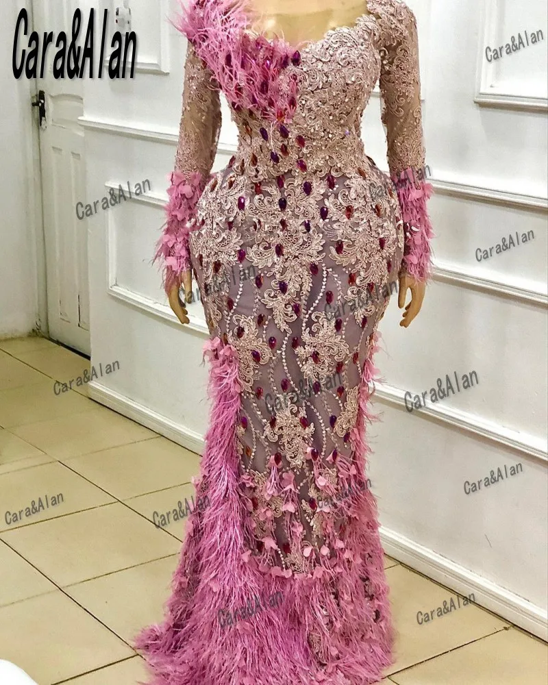 Роскошные платья русалки для выпускного вечера с Длинным Рукавом Кружевная аппликация Кристалл Глубокий круглый Африканский Aso Ebi вечерние платья Женская одежда для вечеринки