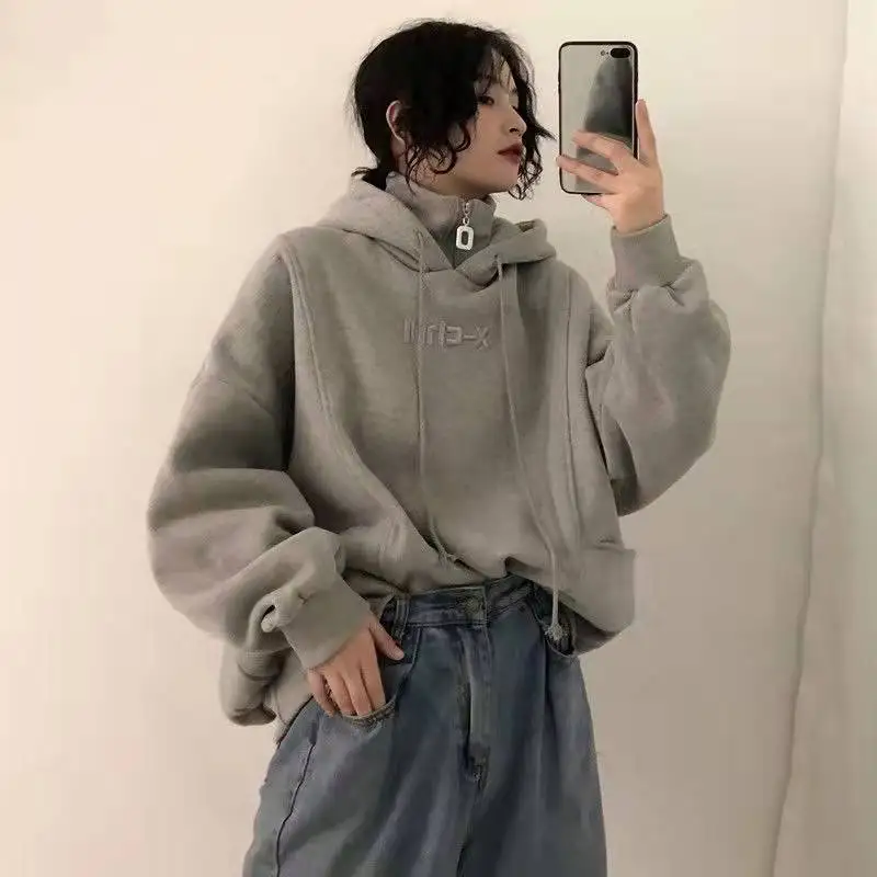 Толстовка женская с капюшоном, флисовая хлопковая спортивная одежда, свитшот, зима 2021, японский Повседневный Свободный пуловер, худи для женщин
