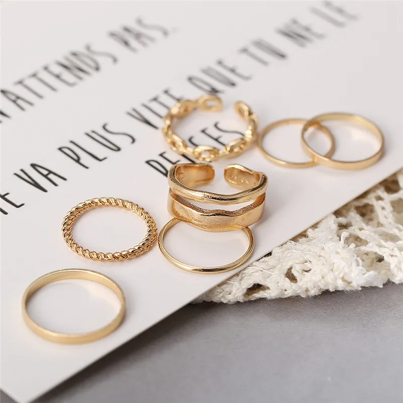 Женский комплект колец в стиле панк, Набор Колец золотого цвета в б...