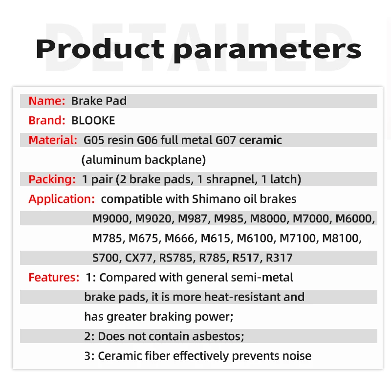 Бренд: BLOOKEНазвание продукта: тормозная колодкаХарактеристики: рассеивание тепла