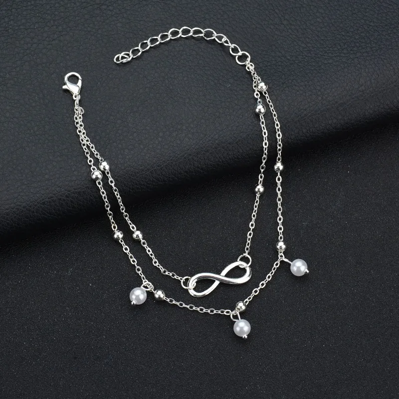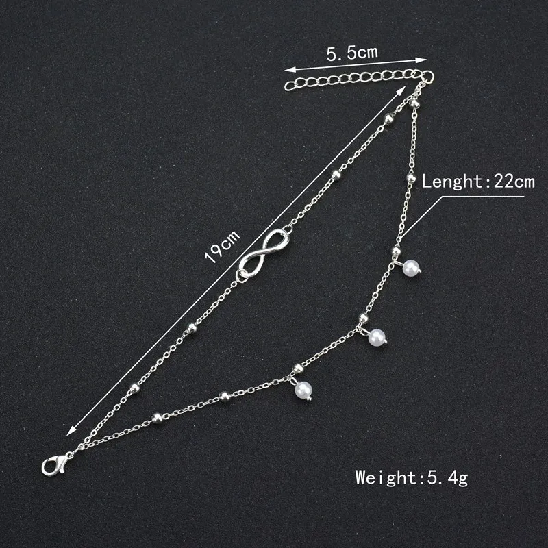 Браслет на щиколотку Женский, с жемчугом, сердцем, бесконечностью, ...