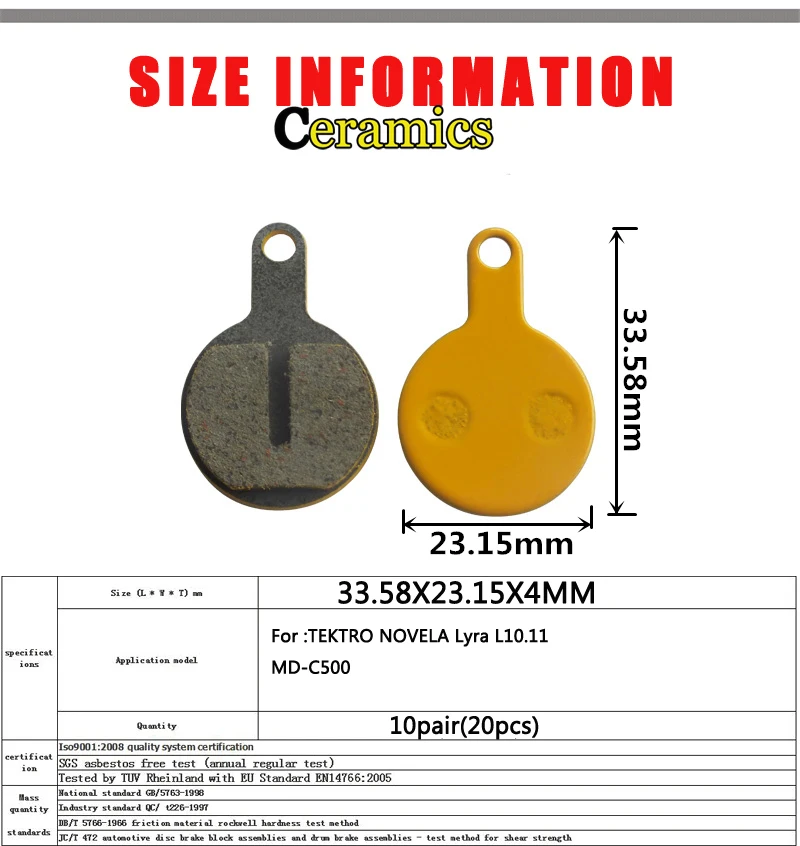 Керамические дисковые Тормозные колодки для горного велосипеда NOVELA Lyra L10.11 MD-C500, 10 пар (20 шт.), аксессуары