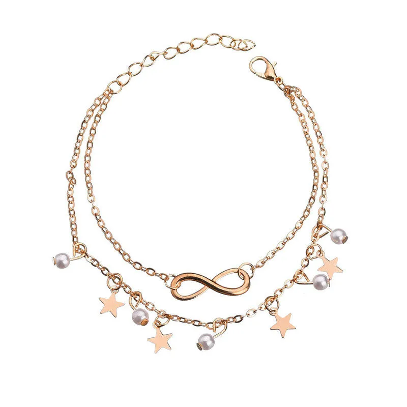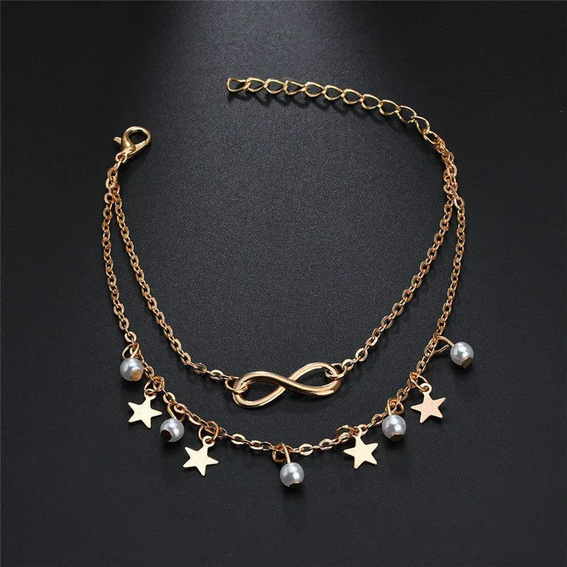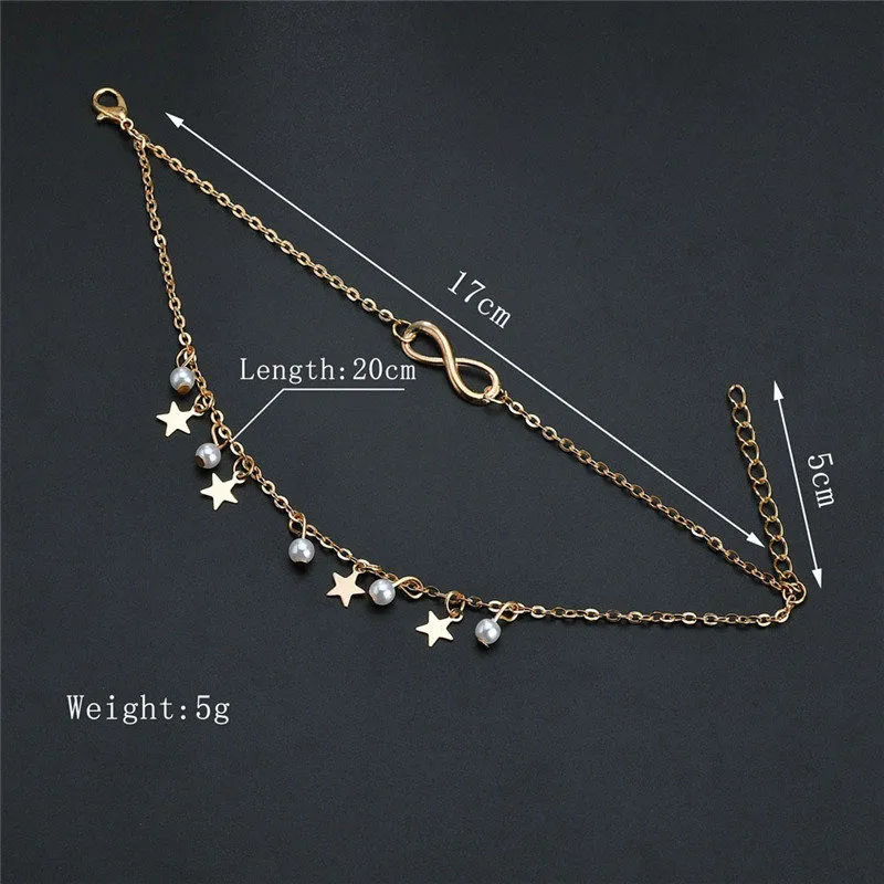 Браслеты на ногу Женские многослойные, анклеты в стиле бохо золотого цвета со звездами и знаком бесконечности, модные искусственные бриллианты, пляжные украшения