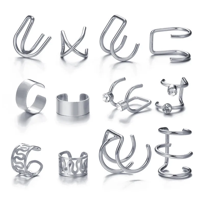 12 шт.компл. набор простых сережек в стиле панк для женщин Клипсы С...