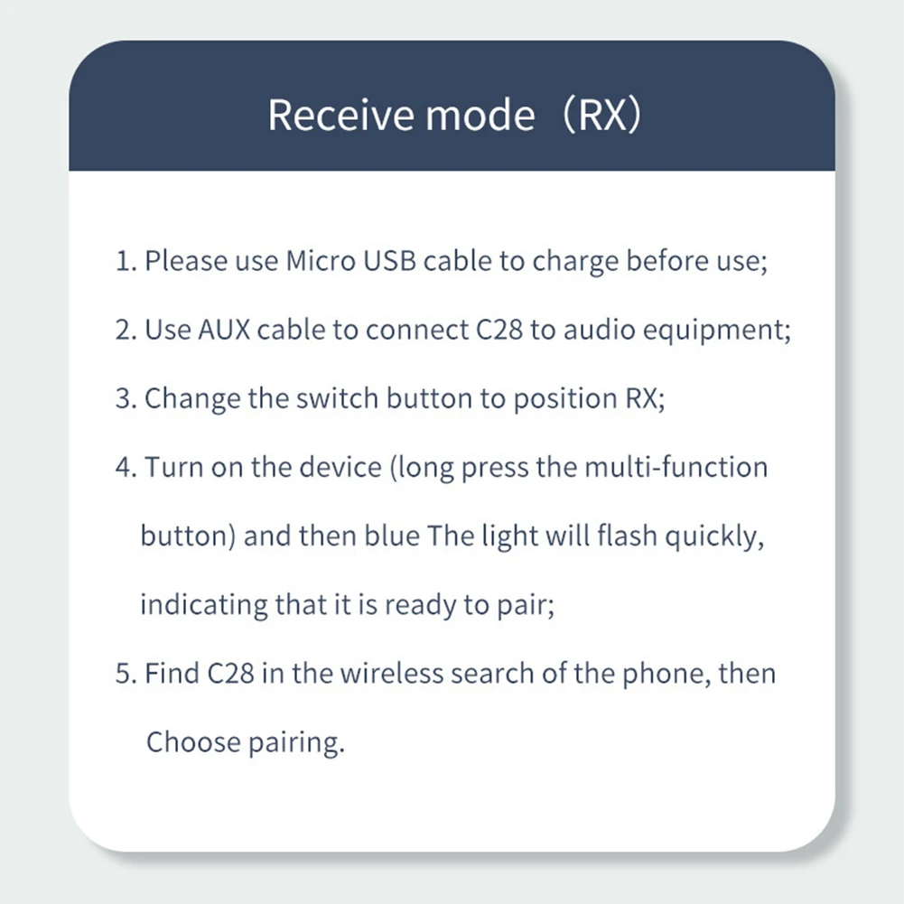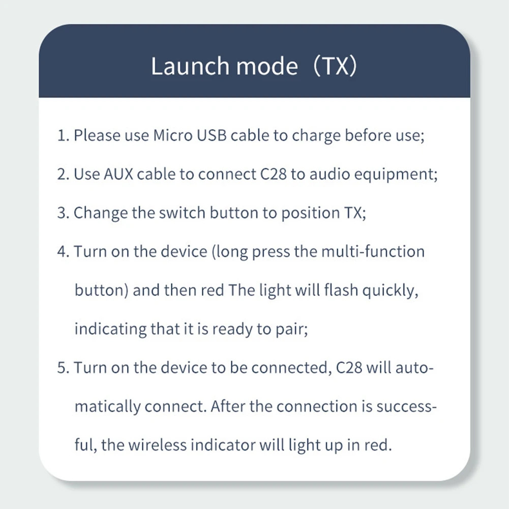 * 2. Низкое энергопотребление, Bluetooth-совместимый V5.0 передатчик и приемник обеспечивают высокую скорость и стабильную передачу сигнала.