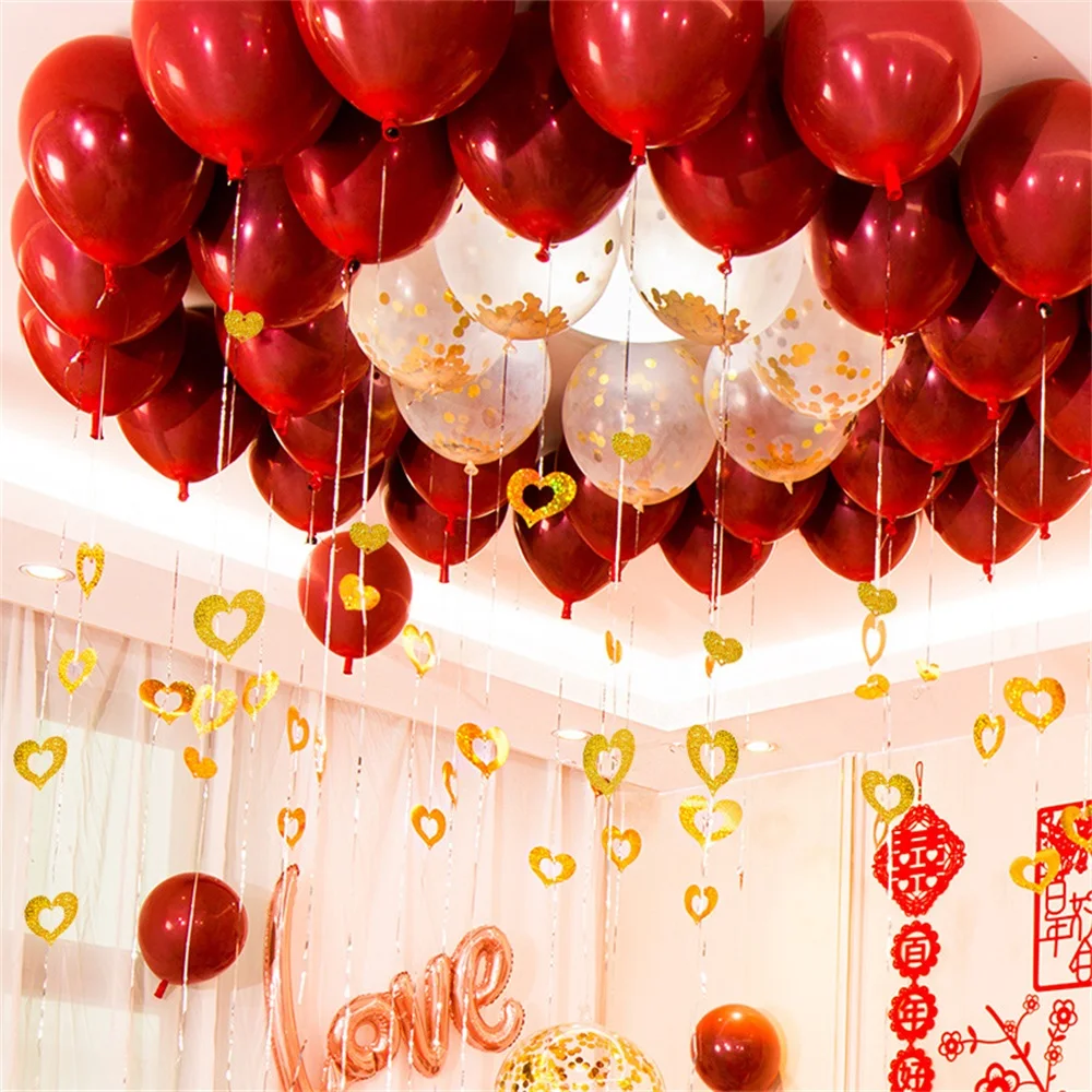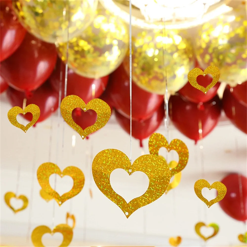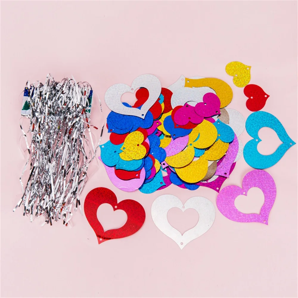 100 шт., подвески с красным сердцем, лазерными блестками, воздушные шары, фольга, дождь, кисточка, Висячие аксессуары, свадебные вечерние украшения для дня рождения