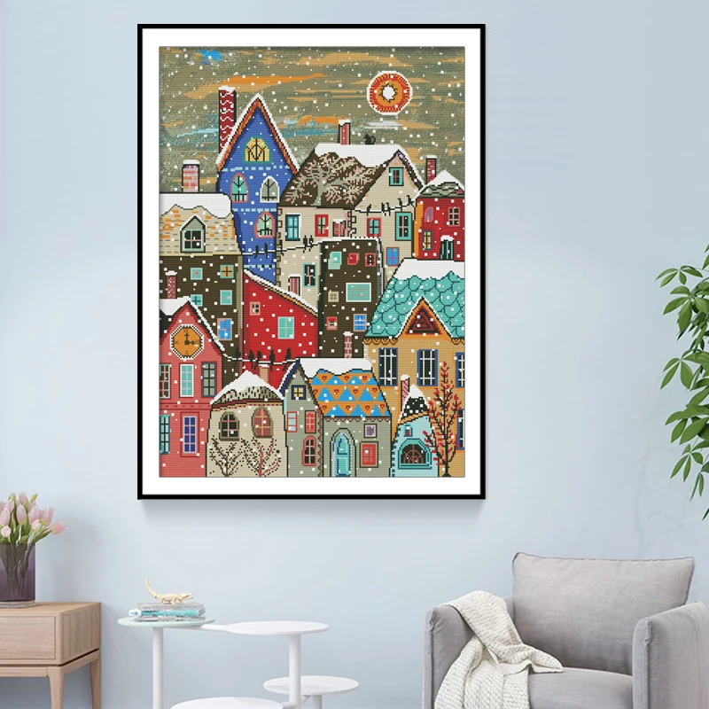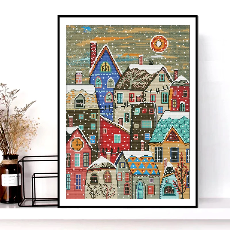 Картина для вышивки крестиком 11CT с изображением снежного коттеджа, набор для рукоделия, хлопковая нить, напечатанный холст, Новогоднее украшение