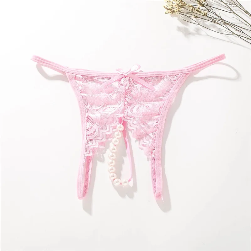 Женские сексуальные кружевные трусики с открытой промежностью, трусики с жемчужинами, женские стринги и стринги, сексуальное прозрачное нижнее белье, трусы