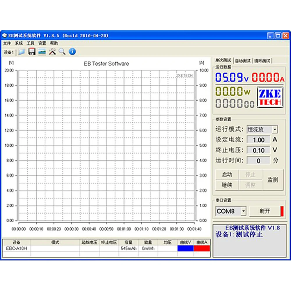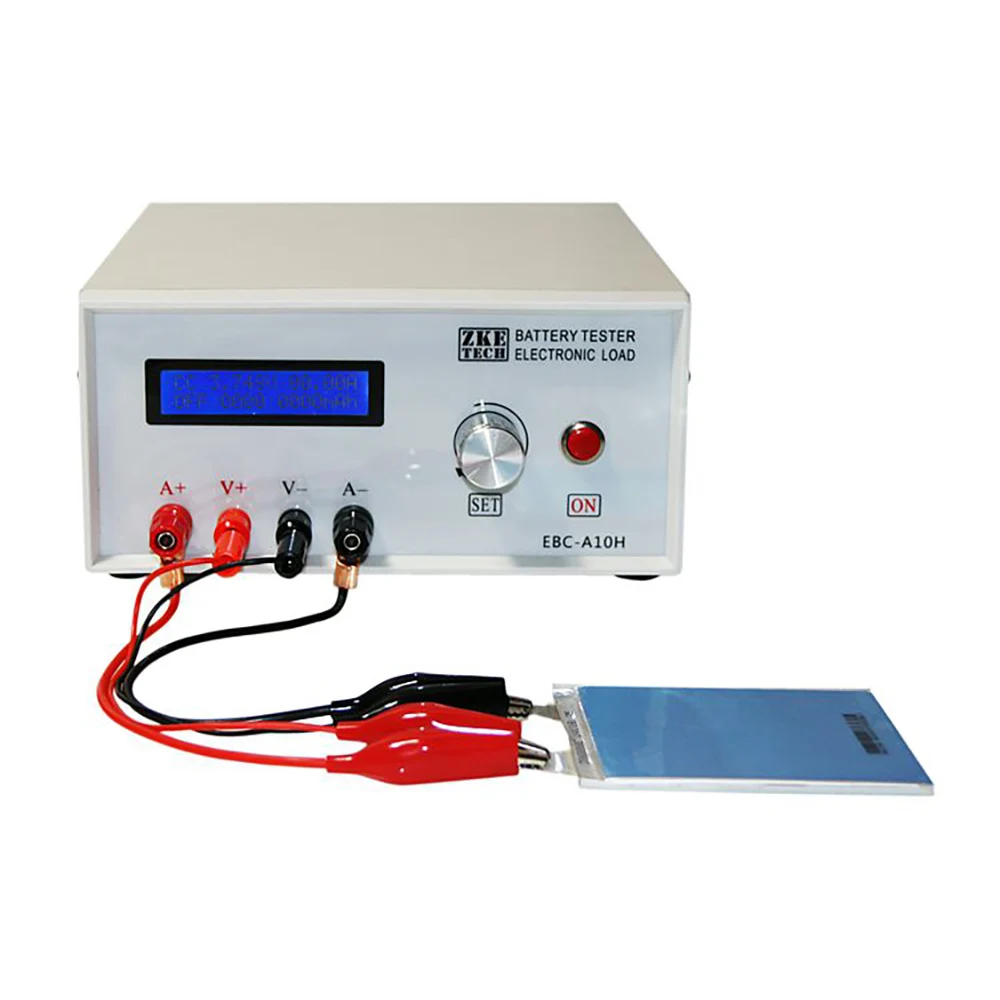1. Особенности1.1 испытание емкости аккумулятораТестер предназначен для зарядки и разрядки широкого спектра батарей/аккумуляторов, таких как NiMH, NiCd, LiPo, LiFe и Pb, и поддерживает испытания емкости.1.2. Портативный внешний аккумуляторЭтот тестер поддерживает зарядку и разрядку портативных аккумуляторов, а также тестирование их мощностей.1.3 испытание производительностиЭтот тестер поддерживает испытания производительности и старения различных видов источников питания постоянного тока.2. Технические характеристики1) Источник питания: 220 В переменного тока (200-240 В переменного тока)2) Диапазон настройки напряжения: 0-30,00 В, шаговый 0,01 в (во время зарядки максимальное напряжение ограничено напряжением питания-2 в)3) Диапазон настройки тока: для зарядки, 0,05-5.00A, шаговый 0.01A (ток регулируется автоматически при превышении мощности) для разрядки, 0,05-10.00A, шаговый 0.01A (максимальный ток должен быть current-0.5A питания)4) режим зарядки:Стандартная зарядка: Поддержка NiMH, NiCd, LiPo, LiFe и Pb батарейCHG-CV: ток и напряжение могут быть установлены при постоянном напряжении (только для батарей) во время разрядки5) Режим разрядки:DSC-CC: разрядка батарей при постоянном токе, поддержка тестирования емкости аккумулятора или тока источника питанияDSC-CP: разрядка батарей при постоянной мощности, для постоянного электрооборудования-как использование или тестирование мощности6) Автоматическая зарядка/разрядка: тестер поддерживает круги «зарядка-разрядка-зарядка» для проверки емкости.7) Напряжение точность: в диапазоне 0-4,5 V, 0,003 V, ± 0.5%, 4,5-30V, 0,01 V, ± 0.5%.8) точность тока: 0,05-10.00A, 0.005A, ± 0.5%.9) обнаружение емкости: < 10Ah,0.001AH; 10-100Ah,0.01Ah; > 100Ah,0.1Ah10) четыре линии: каналы напряжения и тока разделены для высокой точности тестирования11) ЖК-дисплей: напряжение, ток, время, емкость и т. д.12) Подключение к ПК: тестер может подключаться к компьютеру через назначенный USB-TTL кабель для большего количества функций, таких как графики, калибровка, обновление прошивки и тираж теста.3. Меры предосторожности1) положительные и отрицательные соединения не должны быть изменены. Неправильное подключение может повредить тестер.2) Всегда используйте тестер в допустимом диапазоне.Посылка:Тестер емкости аккумуляторной батареи EBC-A10H-1 шт.4 кабеля для тестирования1 кабель USB-TTL1 х Кабель питания