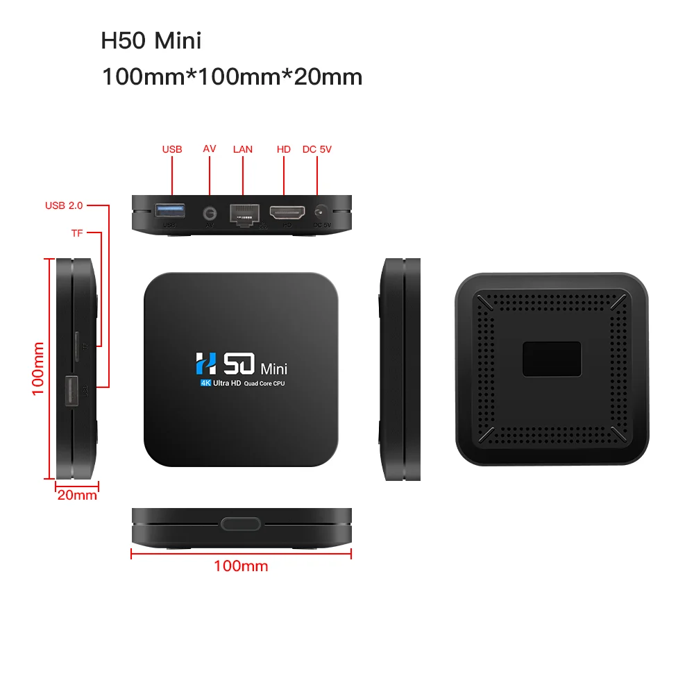 ТВ-приставка H50mini на Android 10,0, 4 + 3264 ГБ, 2,4 ГГц