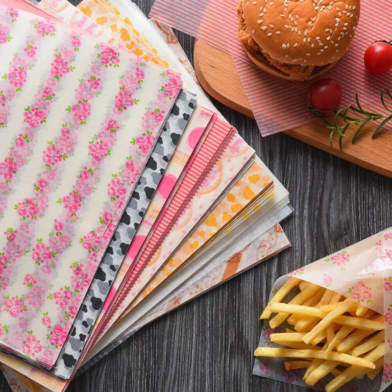 50 шт., пищевые обертки, стандартная пищевая смазочная бумага для хлеба, сэндвичей, гамбургеров, картошки фри, инструменты для выпечки, кухонные аксессуары