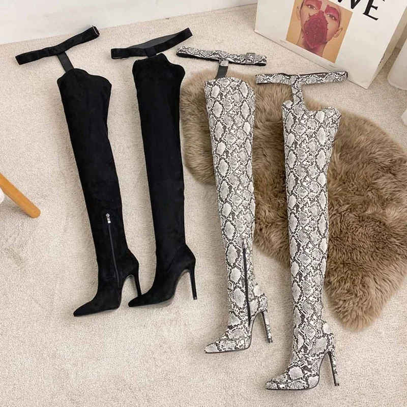 Сапоги до бедра на шпильке, пикантные Сапоги выше колена на молнии,...