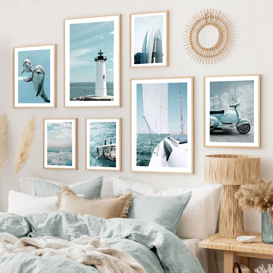 Лодка, пальма, море, пляж, велосипед, дельфин, скандинавский интерь...