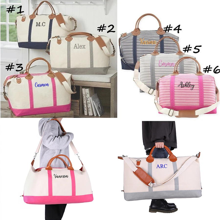 Персонализированная холщовая спортивная сумка с вышивкой, очень большая, идеально подходит для выходных, женская сумка с двойным плечевым диагональным промежутком