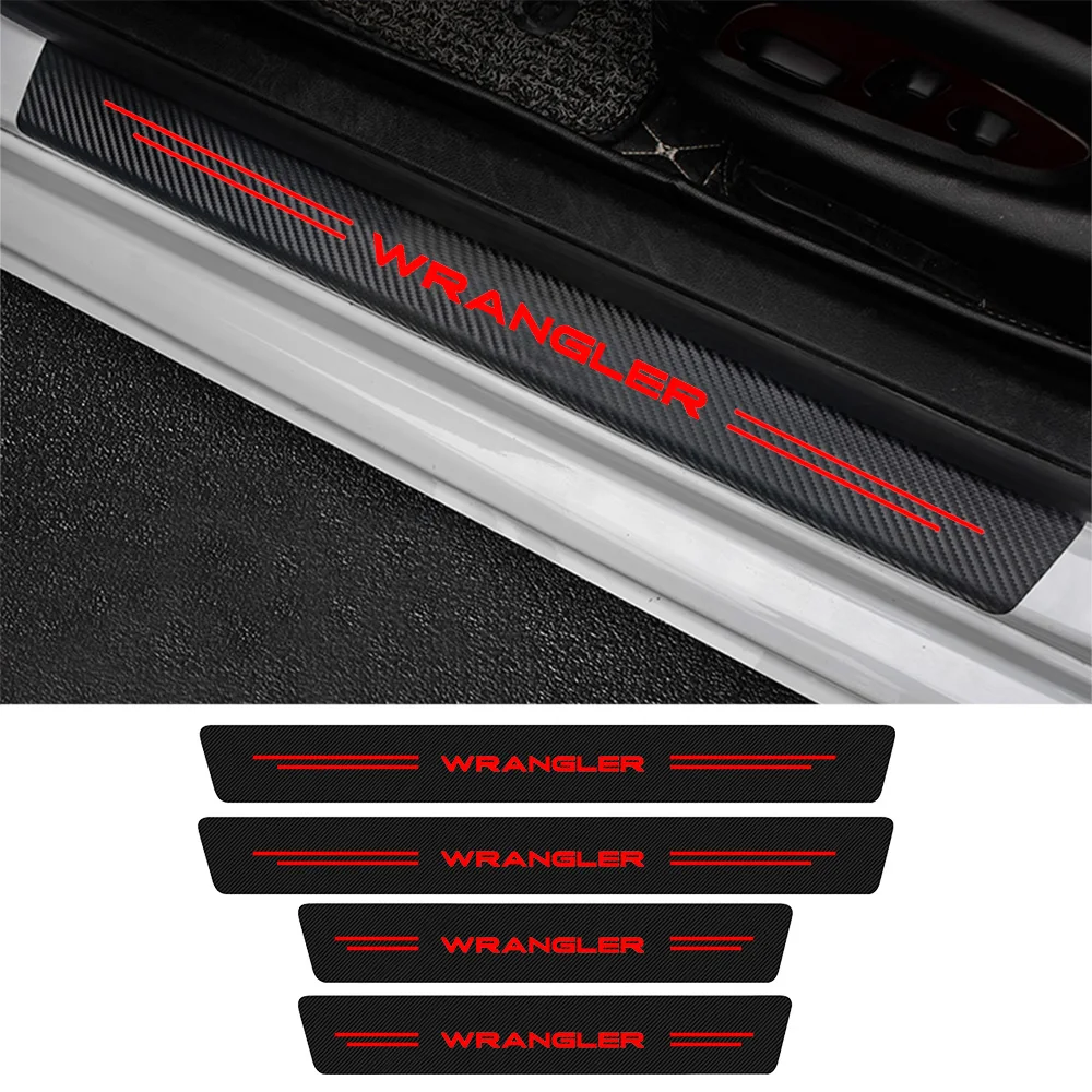 4 шт., красные наклейки на порог автомобильной двери из углеродного...