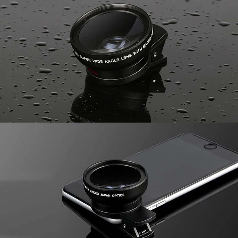 Объектив 2 в 1, универсальный зажим 37 мм, фотообъектив Профессиональный 0,45x 49uv, Супер широкоугольный + макрообъектив HD для iPhone, Android