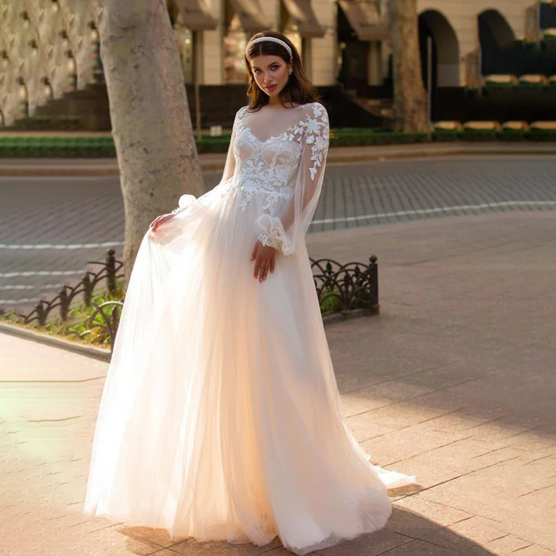 Изящные свадебные платья трапециевидной формы с вырезом сердечком из тюля с пышными рукавами индивидуальный пошив большого размера