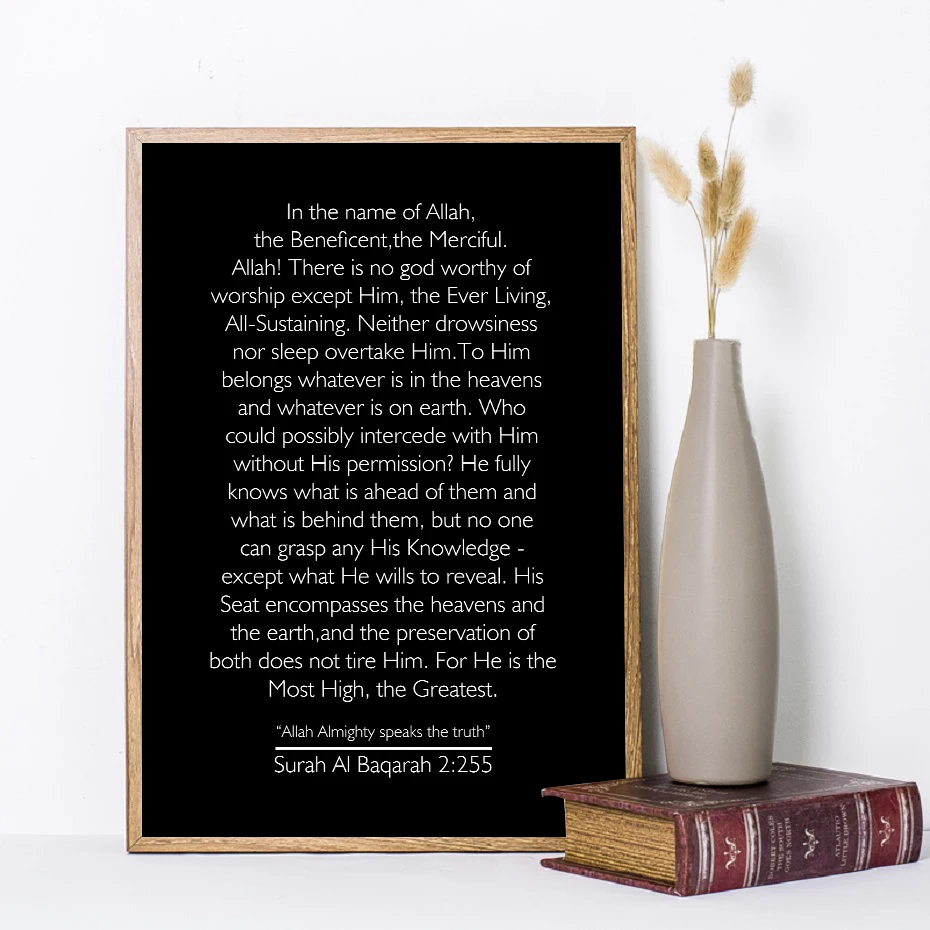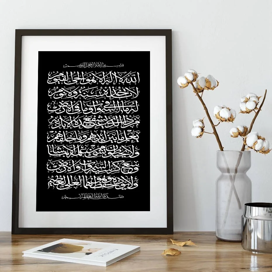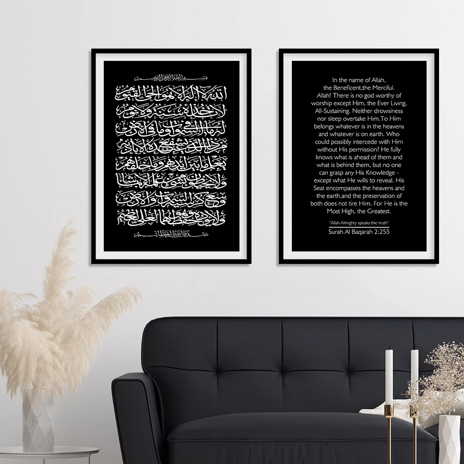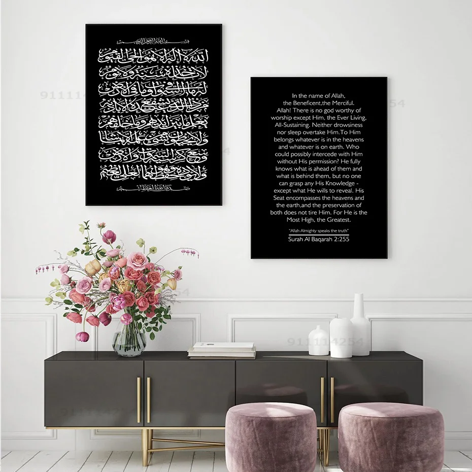Черно-белая холщовая печать, искусство, Сура Аль Бакара, арабская каллиграфия, живопись, подарок, настенный плакат, украшение для дома