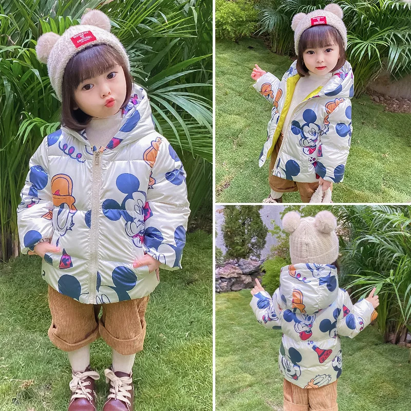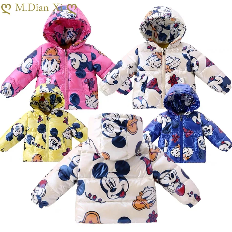 Демисезонный комплект одежды для маленьких мальчиков и девочек с Микки и Минни, хлопковая куртка с капюшоном и милым рисунком, зимняя теплая куртка с принтом