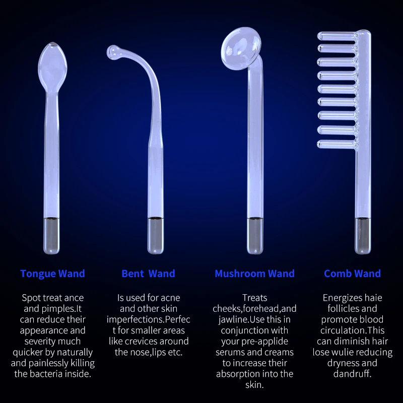 Дарсонваль, высокочастотный неоновый аргон для лица грибовидный электрод насадка синие трубки лампа массажера уход за кожей лица