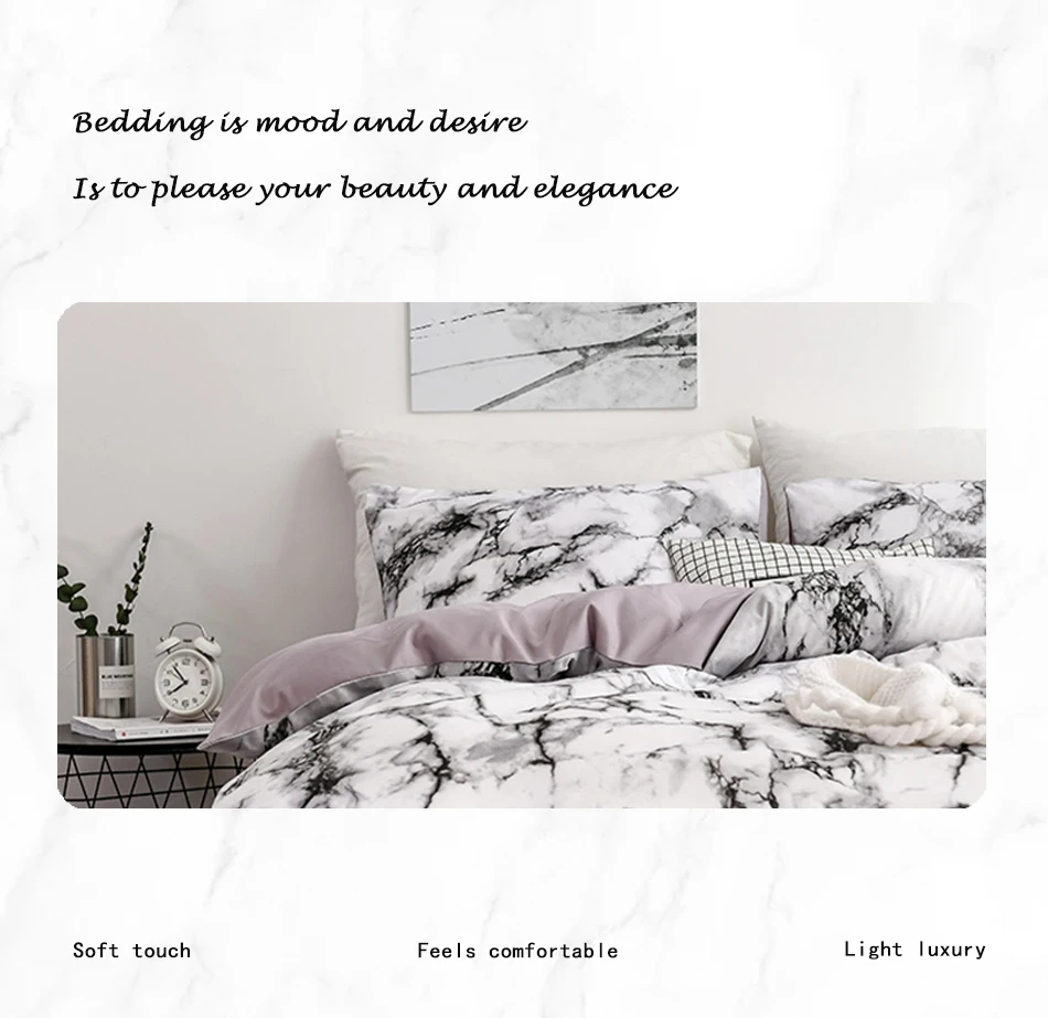 Мраморный комплект с пододеяльником и наволочкой, Модный комплект п...