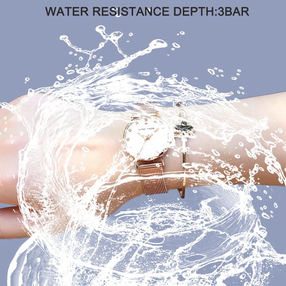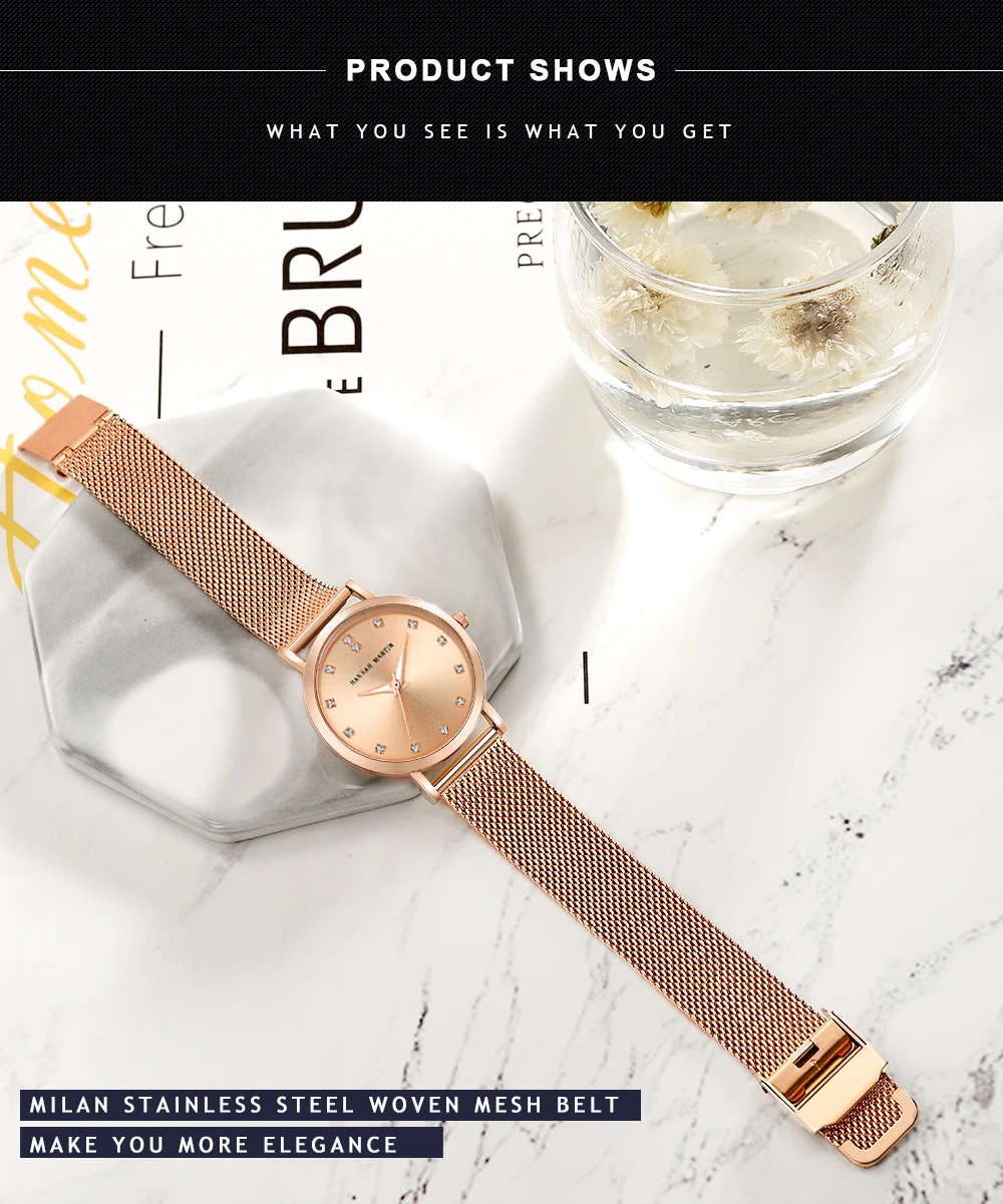 Часы женские водонепроницаемые из нержавеющей стали с сетчатым браслетом