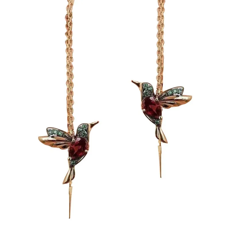 Серьги-цепочки с кисточками и Колибри, ювелирные аксессуары, ювелир...